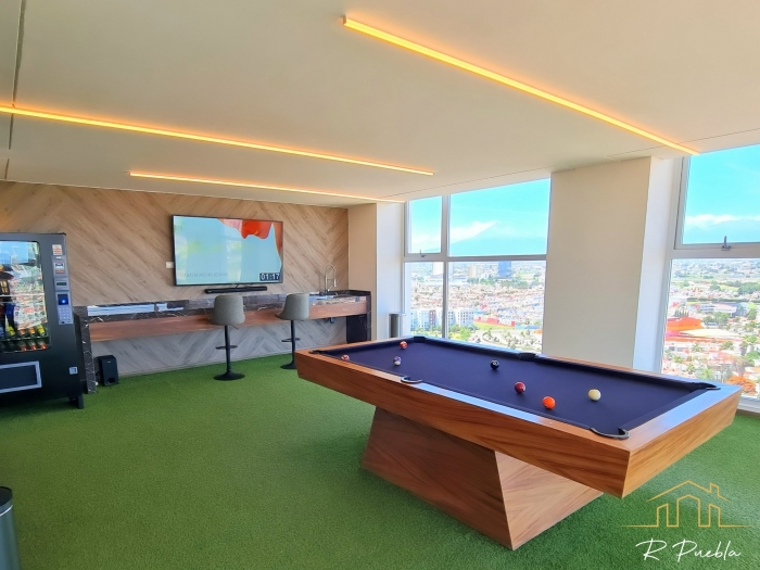 Alberca. Regaderas y vapor. Terraza con asador. Áreas verdes. Centro de negocios. Cafetería.