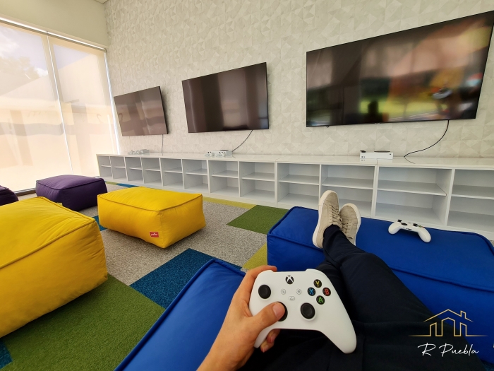 Cuarto de masajes. Cuarto de deportes con práctica de golf digital. Salón de usos múltiples. Etc.